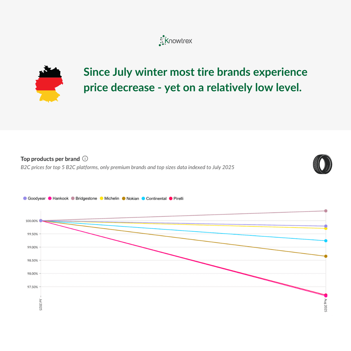 Tracks monthly indexed pricing across Germany’s most active tire brands and sizes